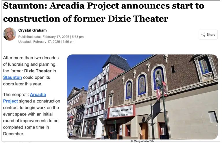 Arcadia Project looking to revitalize former Dixie Theater in Staunton – June 9, 2023
